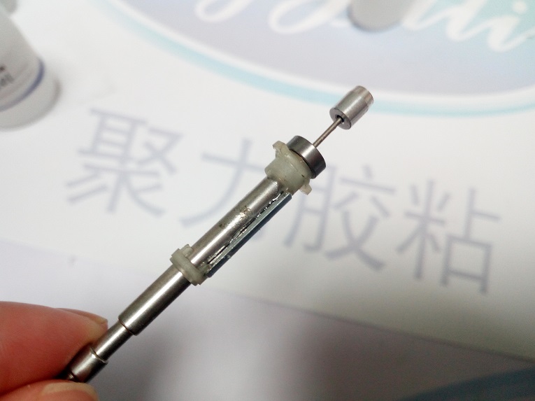 上個月末,一家制造電動牙刷的客戶寄電機轉子材質過來,這是一個用于電動牙刷的核心零配件,客戶要求粘牢牙刷內部零件的小磁鐵和不銹鋼,我司技術人員對客戶提供的材質進行了仔細分析,小磁鐵片作為轉子,其不銹鋼與小磁鐵的粘接面較小,適合用聚力快干膠水。