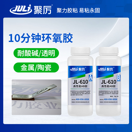聚厲牌JL-610快干環氧樹脂AB膠為快速固化、透明粘稠狀環氧樹脂粘接劑,可低溫或常溫固化,固化速度快;固化后粘接強度高、硬度較好,韌性佳;廣泛應用于電子電氣、工藝禮品、石油化工等行業的金屬、陶瓷、木材、玻璃及硬質塑膠之間的封裝粘接。