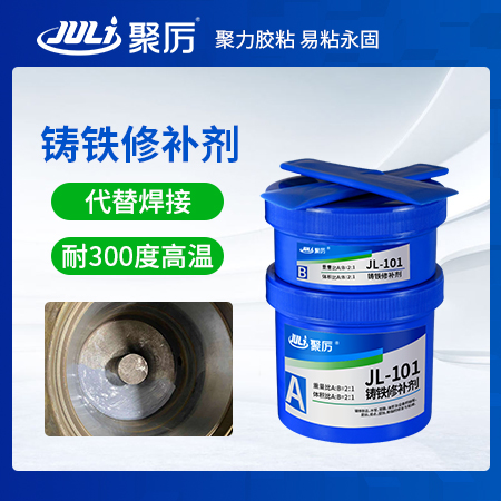 聚厲牌JL-101耐300度高溫鑄鐵修補(bǔ)劑系列產(chǎn)品是以改性高分子樹(shù)脂為主體,以金屬及合金為強(qiáng)化填充劑的聚合金屬?gòu)?fù)合型冷焊修補(bǔ)材料,固化后具有優(yōu)異的機(jī)械性能,可進(jìn)性鉆孔、車牙、切削、砂磨及攻絲等各種機(jī)械加工,用于各種金屬鑄件的修補(bǔ)及各種鑄件的修補(bǔ)及各種鑄件氣孔、砂眼、裂紋、磨損、腐蝕的修補(bǔ)。