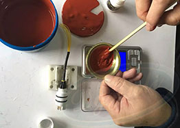 2、涂膠:聚厲牌高溫密封膠是由A、B雙組份組成,使用時(shí)嚴(yán)格按規(guī)定的配合比將主劑A和固化劑B充分混合到顏色均勻一致,并在規(guī)定的可使用時(shí)間內(nèi)用完,剩余的膠不可再用;